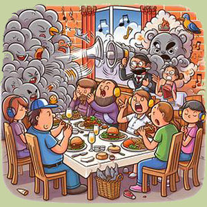 Maar in het restaurant ging het mis, want alles wordt daar versterkt.