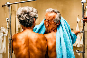 Als je 't zelf niet meer trekt , dan heb je Greet van tweehoog , die je rug komt boenen na 't douchen.