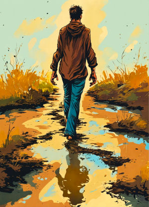 Edvard , iets minder stabiel op zijn benen, bleef een beetje achter en kreeg een plotselinge drang om te schilderen.