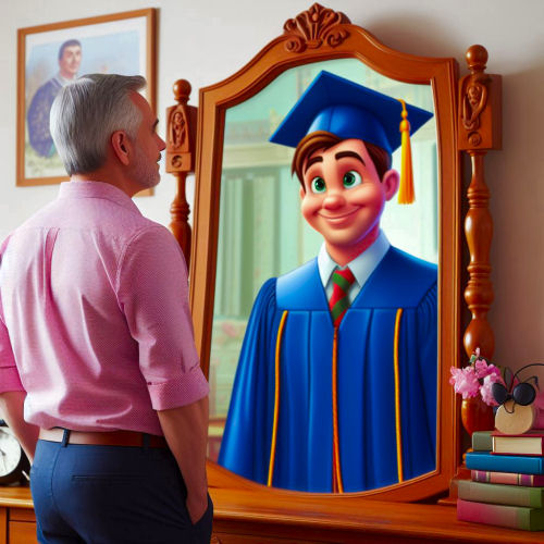 Deze wonderlijke spiegel tovert mijn reflectie om tot een versie van twintig jaar geleden.