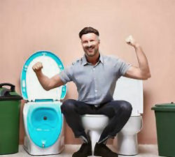 Heeft u al mijn milieuvriendelijke afwerkingsunit gezien? vroeg de groene man. En hij nam me mee naar een goed ingerichte WC.